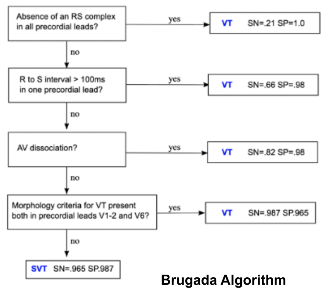 Figure 3. Brugada Algorithm (Image from: https://litfl.com/vt-versus-svt-ecg-library/ )