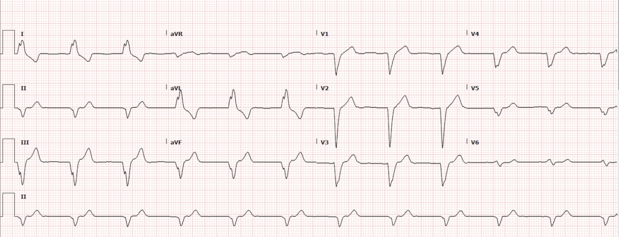 However, prior to discharge, the patient’s heart rate spontaneously increased to the 200s, she became dizzy, and was unable to stand on her own. At this time, yet another EKG was obtained (Figure 4).