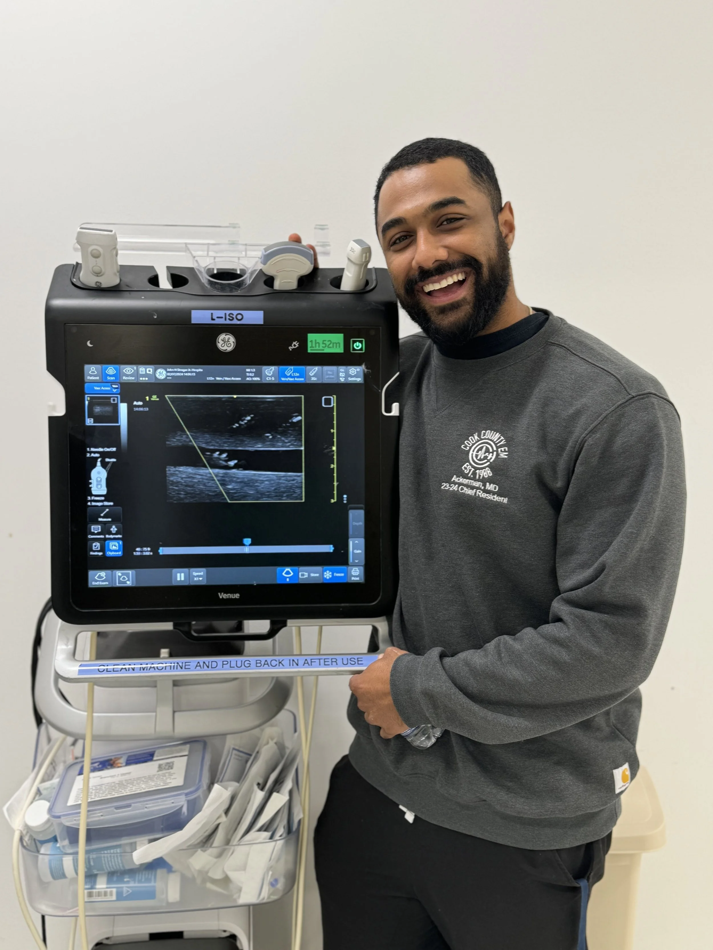 Our one-year, multi-center Emergency Ultrasound Fellowship combines the resources of a busy urban public teaching hospital with the experiences of an active community hospital system. Our original fellowship was birthed in 2010 at Cook County Hospital, a setting that cares for over 120,000 patients per year and trains 68 EM residents in our storied EM residency that originated in 1988.